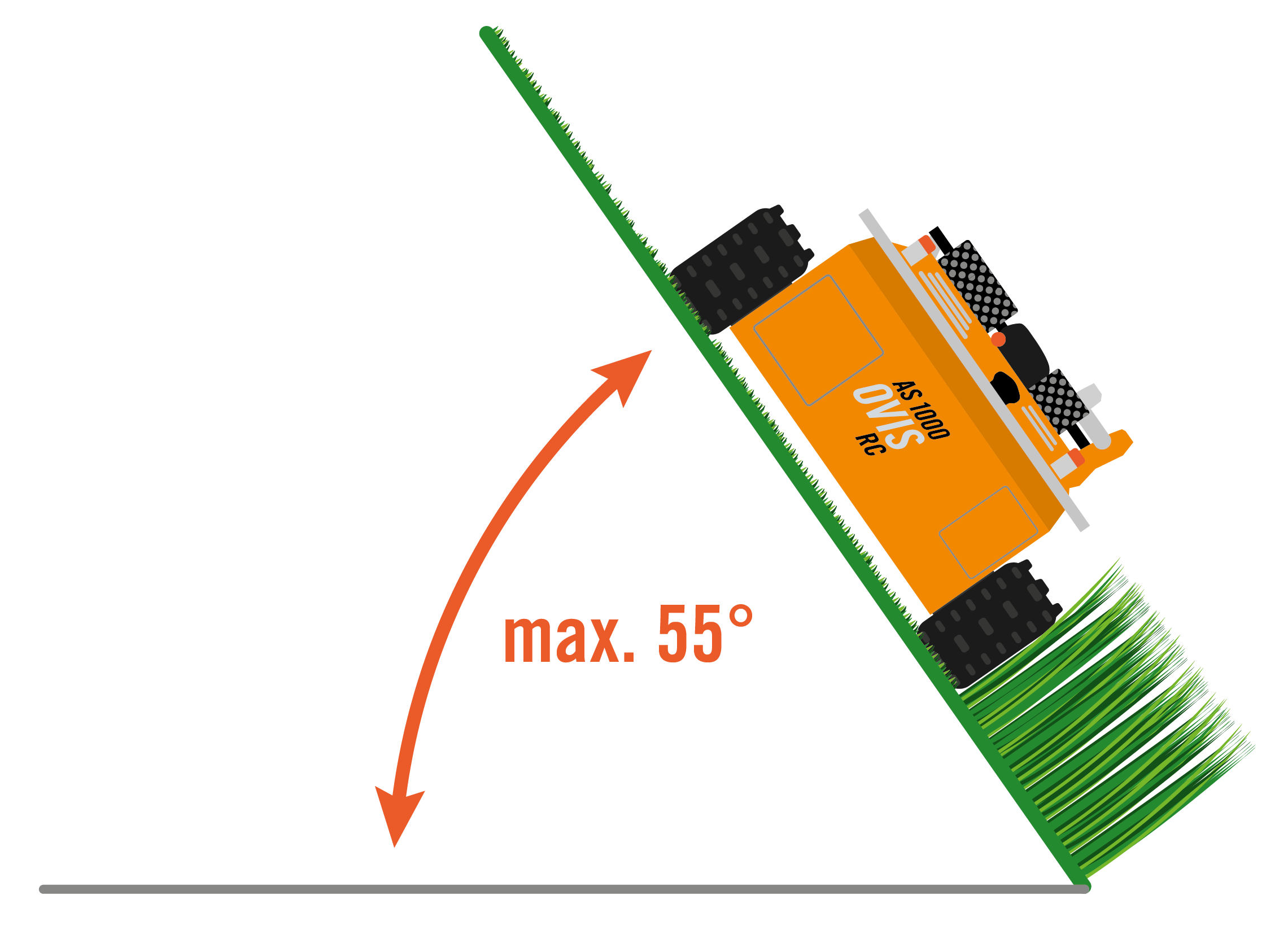 AS 1000 Ovis RC má osvedčené prednosti cepovej kosačky: maximálnu rýchlosť kosenia, vynikajúci priebeh kosenia a rovnomerné uloženie trávy.