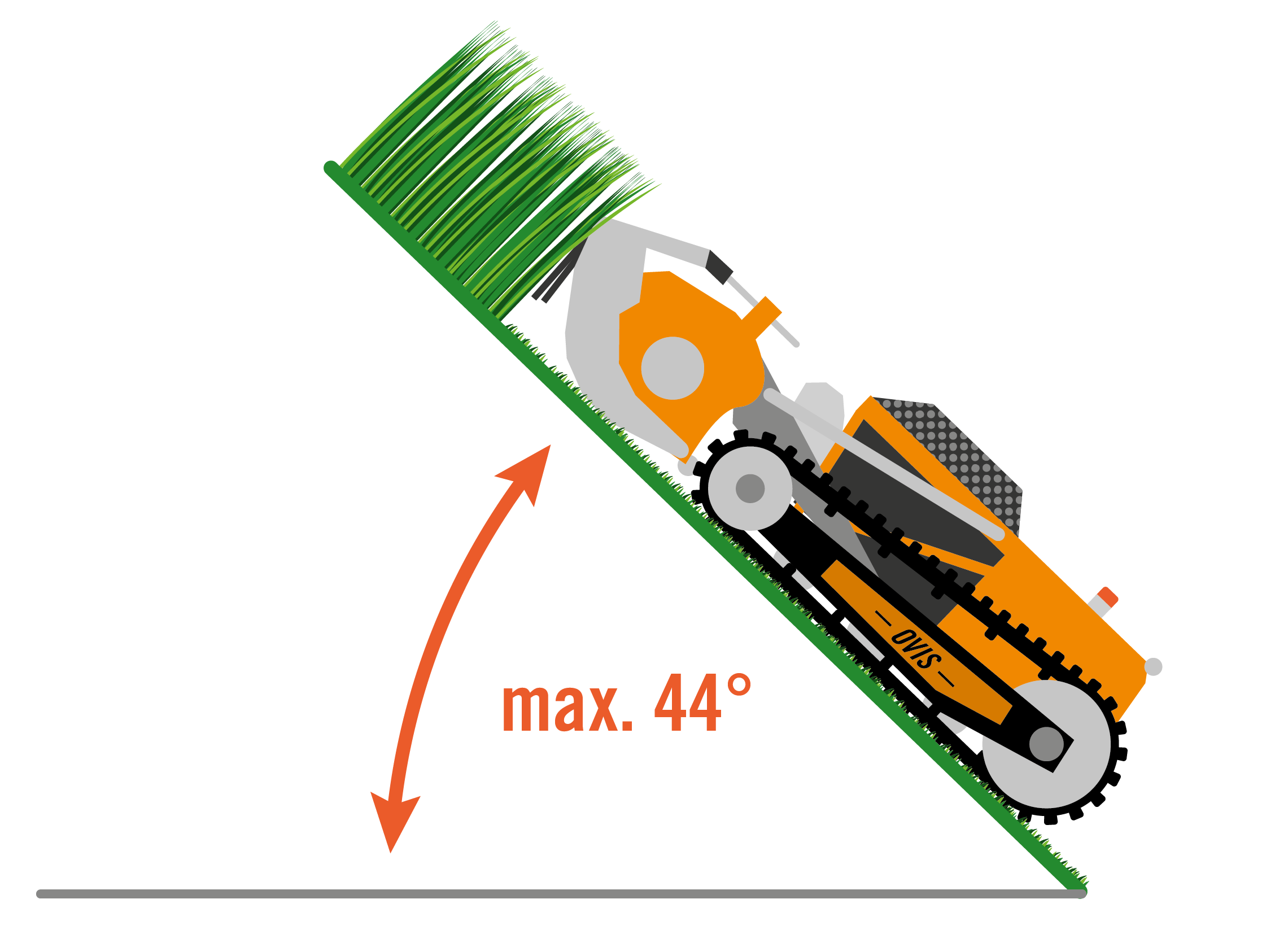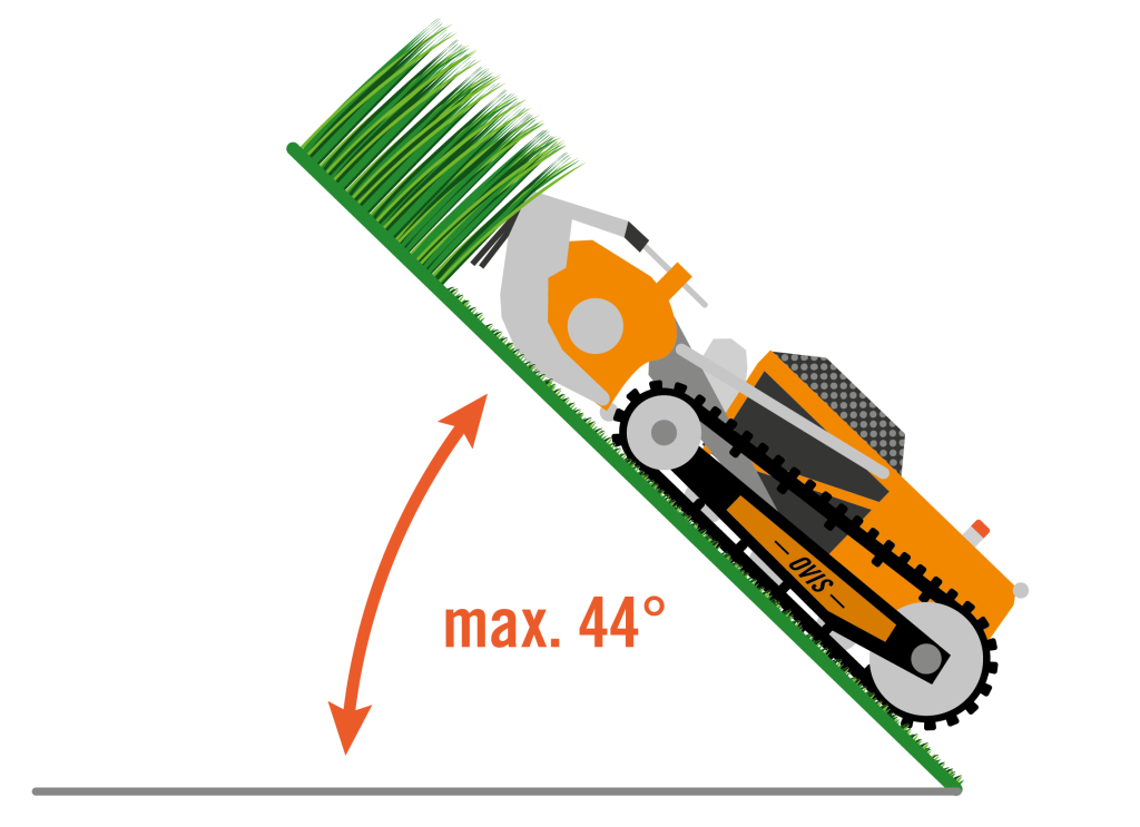Nízka prevádzková hmotnosť (iba 419 kg) a kompaktné rozmery (184 cm / 115 cm / 69 cm) umožňujú kosenie pod nízkymi prekážkami a na strmých svahoch.